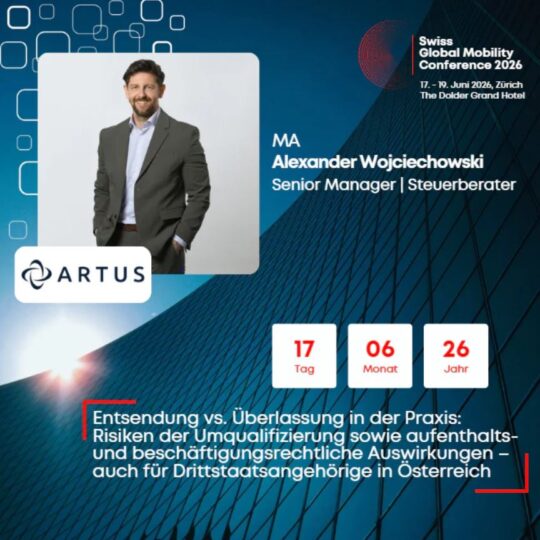 Wir freuen uns besonders, dass unser Senior Manager Alexander Wojciechowski heuer als Speaker vertreten sein wird. In seinem Vortrag wird er Einblicke in unsere Praxiserfahrungen sowie aktuelle Entwicklungen im Bereich Global Mobility geben und diese mit einem internationalen Fachpublikum teilen. Gemeinsam mit ARTUS Partner Michael Obernberger, der ebenfalls vor Ort sein wird, nutzen wir die Konferenz, um den Austausch innerhalb der Branche weiter zu stärken und neue Impulse für unsere Beratungsarbeit zu gewinnen.